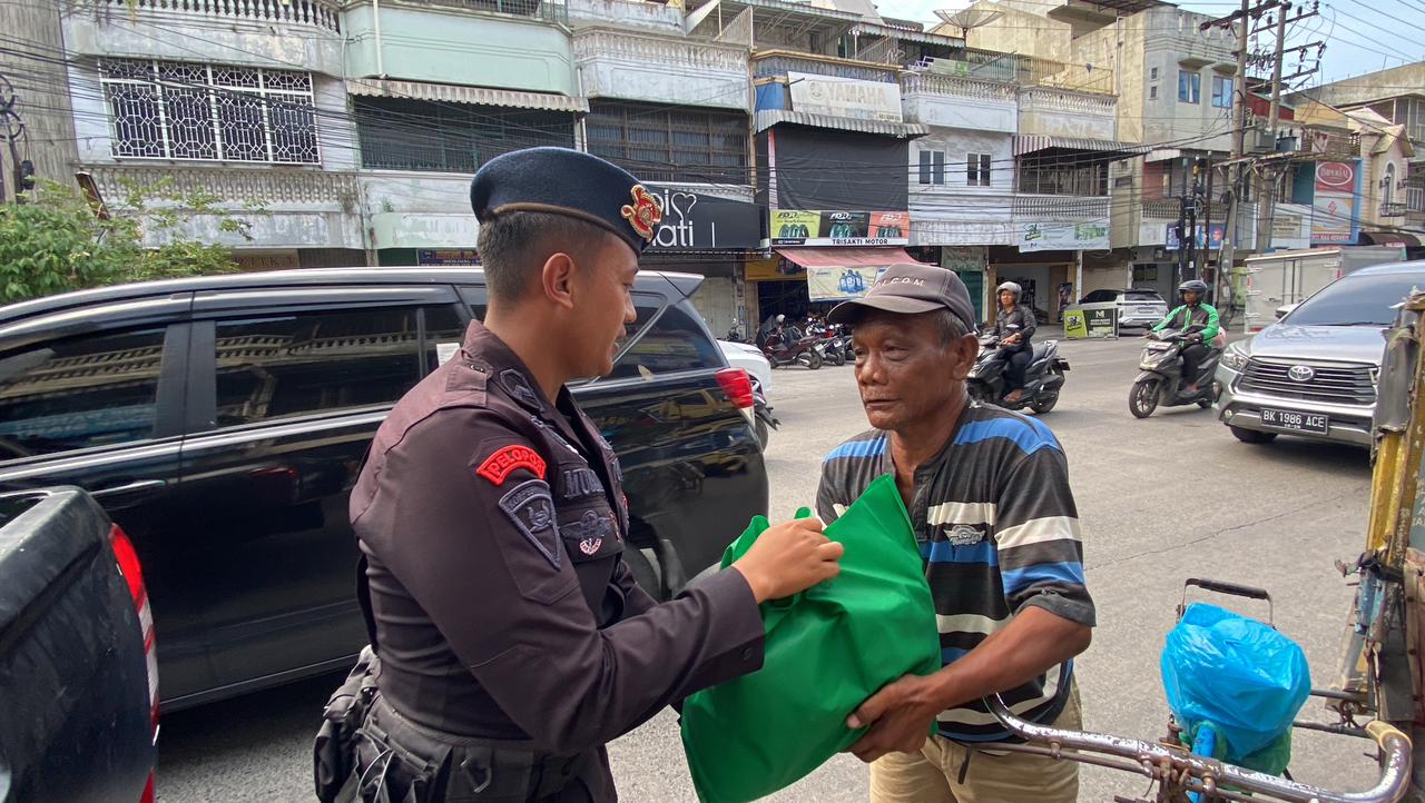 Personil Batalyon A Satuan Brimob Polda Sumut melaksanakan kegiatan Berbagi Berkah di Hari Jumat yang berlangsung di beberapa titik wilayah Kota Medan, tepatnya di Jl. Surya Indra Kasih Kecamatan Medan Tembung, Jl. Sutomo Ujung Gaharu Kecamatan Medan Timur, dan Jl. Wiliam Iskandar Sidorejo Hilir Kecamatan Medan Tembung. Jumat (07/11/2025).
