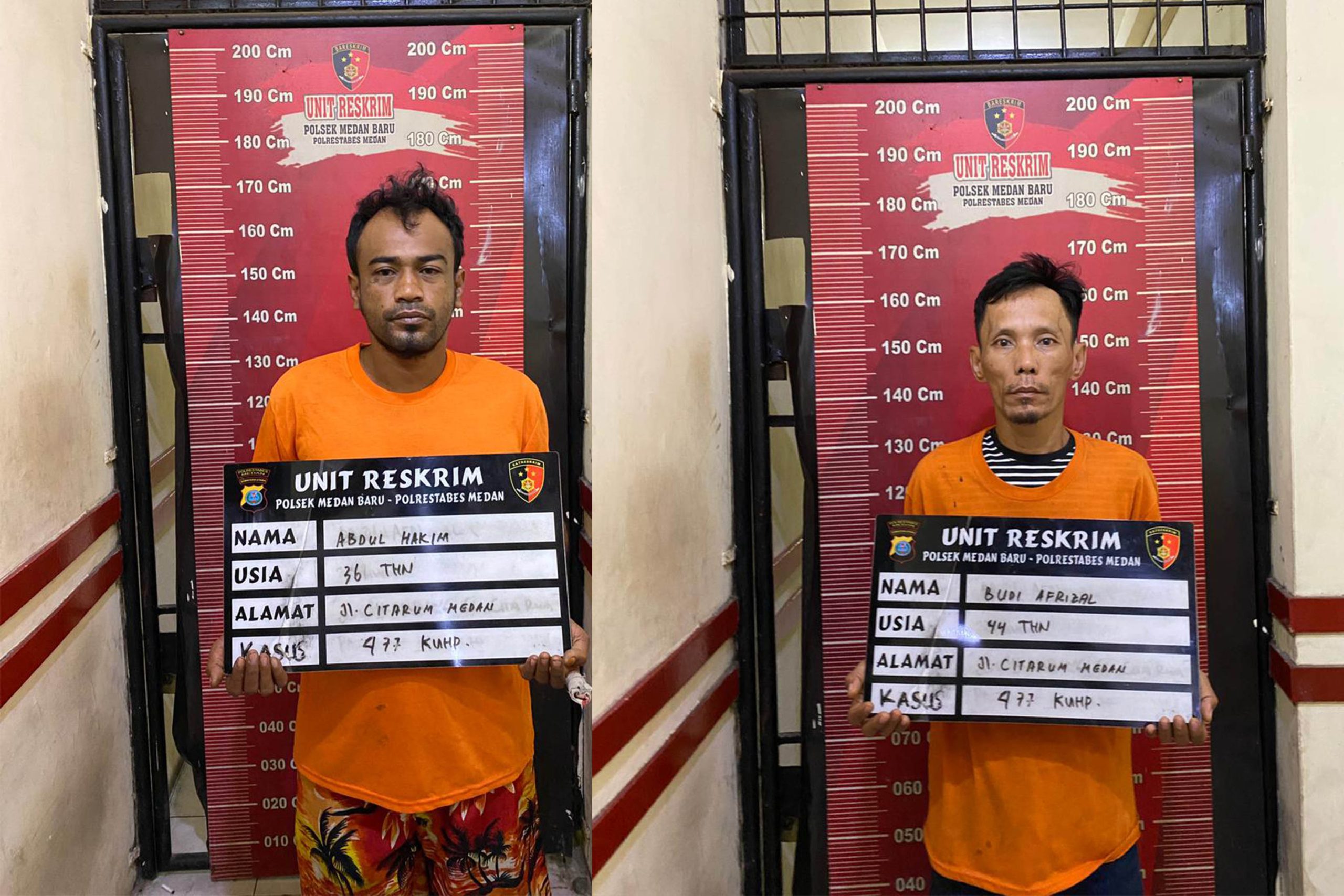 Unit Reskrim Polsek Medan Baru meringkus dua pria terduga pelaku pencurian rumah di Jalan Sei Kambing, Kelurahan Sei Putih Timur I, Kecamatan Medan Petisah, pada Senin (12/1/2026) dini hari. Kedua pelaku tersebut adalah Abdul Hakim (36) dan Budi Afrizal Aruan (44), warga Jalan Sei Kambing Gang Citarum, Kelurahan Sekip. Korban dalam kasus ini diketahui bernama Muslim (72), warga Jalan Gunung Karatau, Medan Timur.