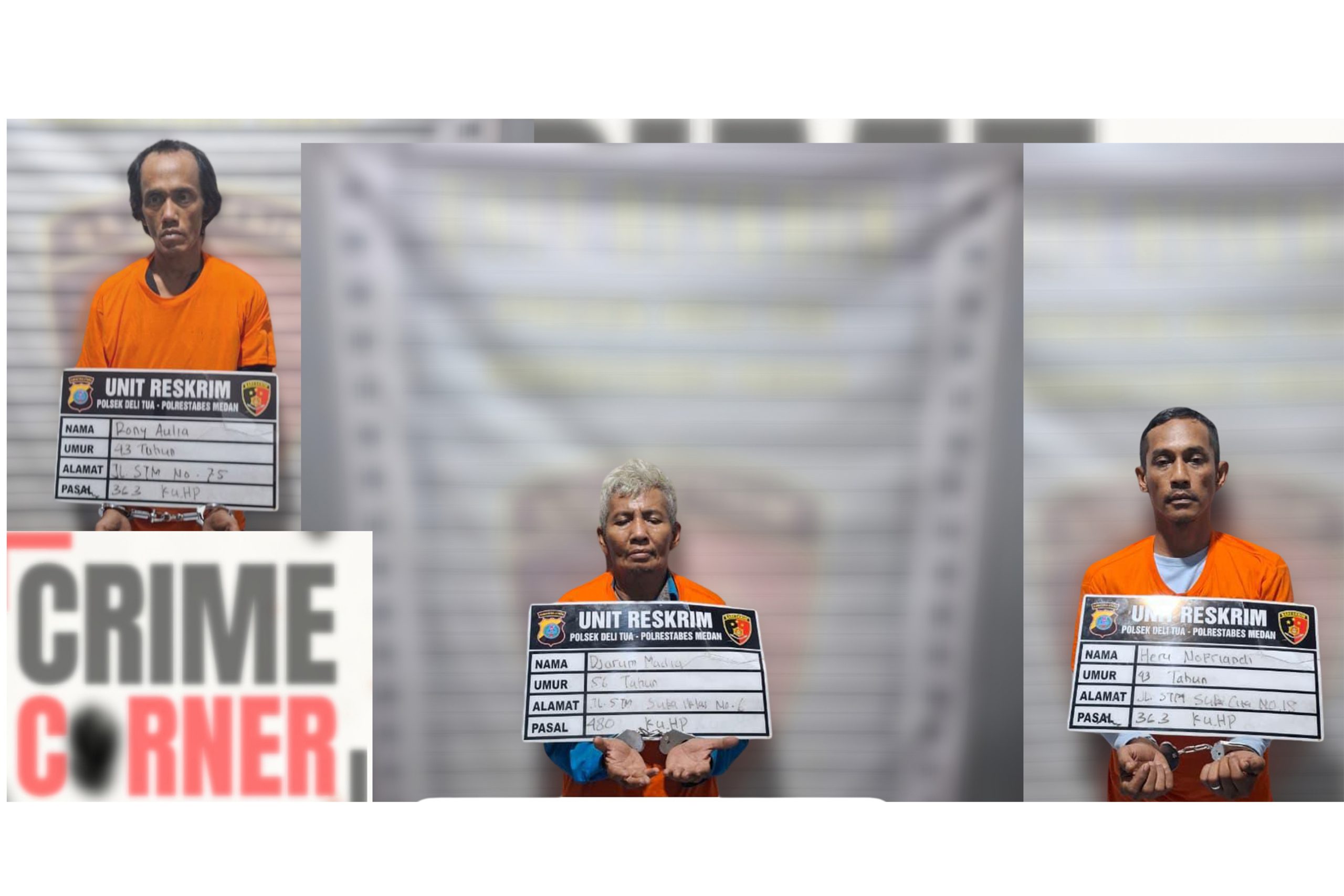 Ketiga pelaku ditangkap pada Sabtu, 15 November 2025, sekitar pukul 12.00 WIB di Jalan STM Gang Suka Cita, Medan Johor. Mereka kini menjalani pemeriksaan lanjutan di Polsek Deli Tua.