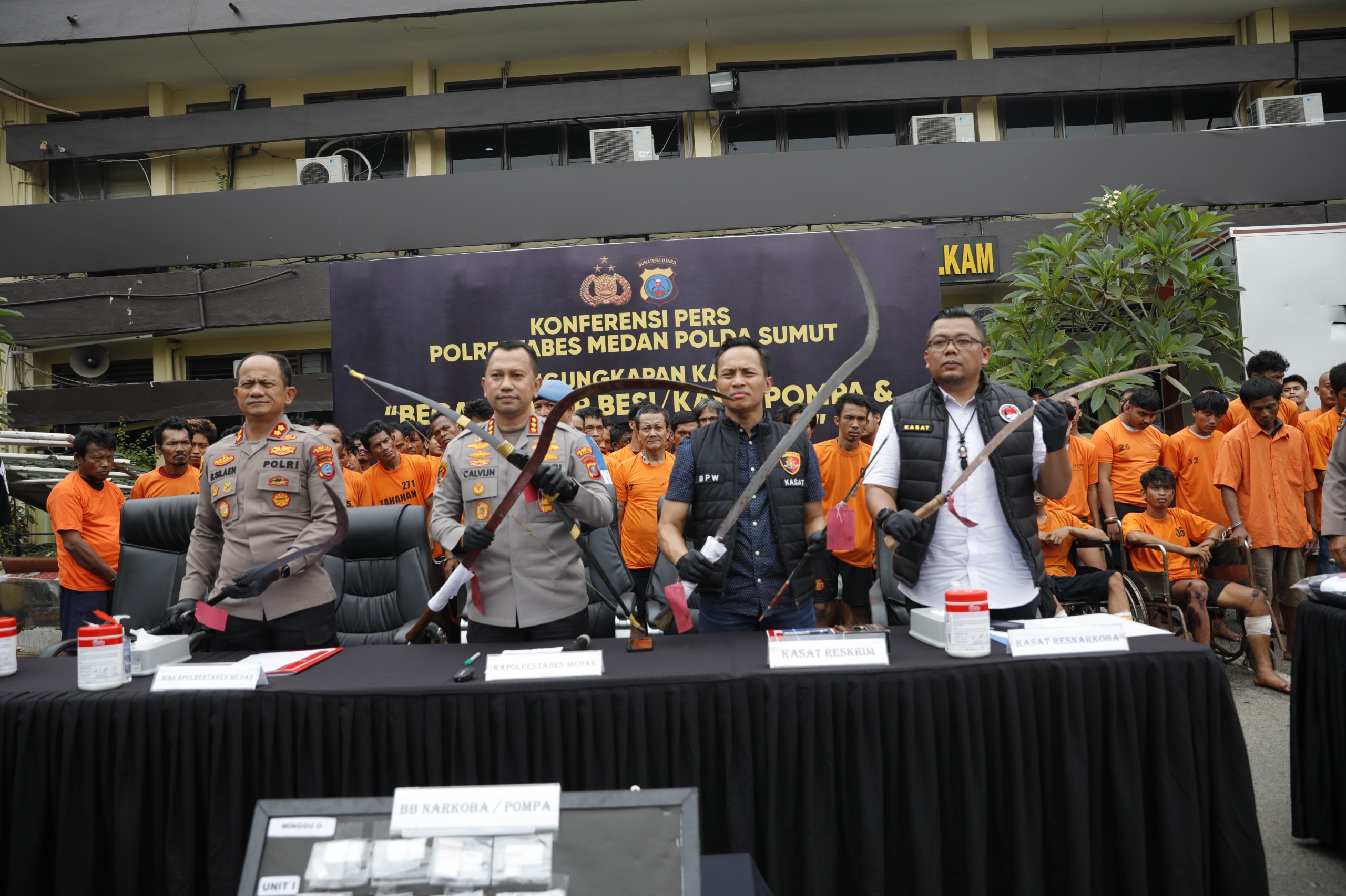 Jajaran Polrestabes Medan di bawah pimpinan Kombes Pol Dr. Jean Calvijn Simanjuntak, S.I.K., M.H., kembali menorehkan hasil signifikan dalam pemberantasan kejahatan jalanan dan narkotika. Dalam kurun waktu 15 hari, periode 9 hingga 24 Oktober 2025, Polrestabes Medan berhasil mengungkap 103 kasus dengan 147 tersangka yang terdiri dari kasus begal, rayap besi dan kayu, narkoba (pompa), serta kekerasan kelompok atau geng motor.