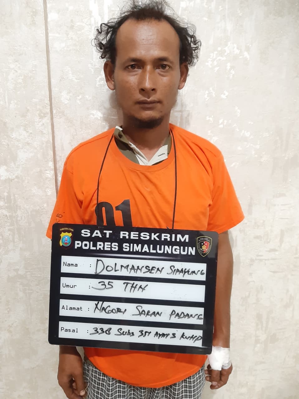 Unit Jatanras Satuan Reserse Kriminal Polres Simalungun menangkap Dolmansen Sipayung (36), terduga pelaku pembunuhan terhadap Edward Sembiring (52), kurang dari sembilan jam setelah kejadian. Pelaku diamankan pada Jumat pagi, 14 November 2025, sekitar pukul 08.00 WIB, usai melarikan diri ke area perbukitan.