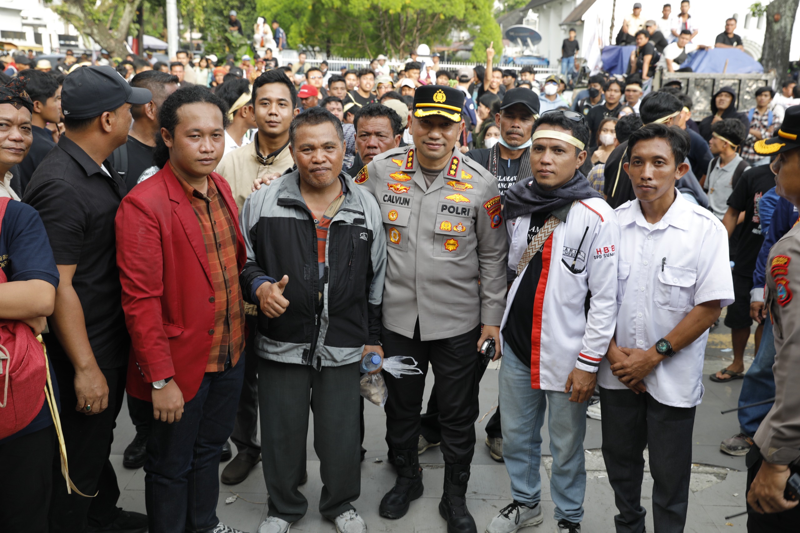 Di sisi pengamanan, Kapolrestabes Medan, Kombes Pol Dr. Jean Calvijn Simanjuntak, S.I.K., M.H., memimpin langsung pengamanan unjuk rasa di depan Kantor Gubernur Sumatera Utara.
