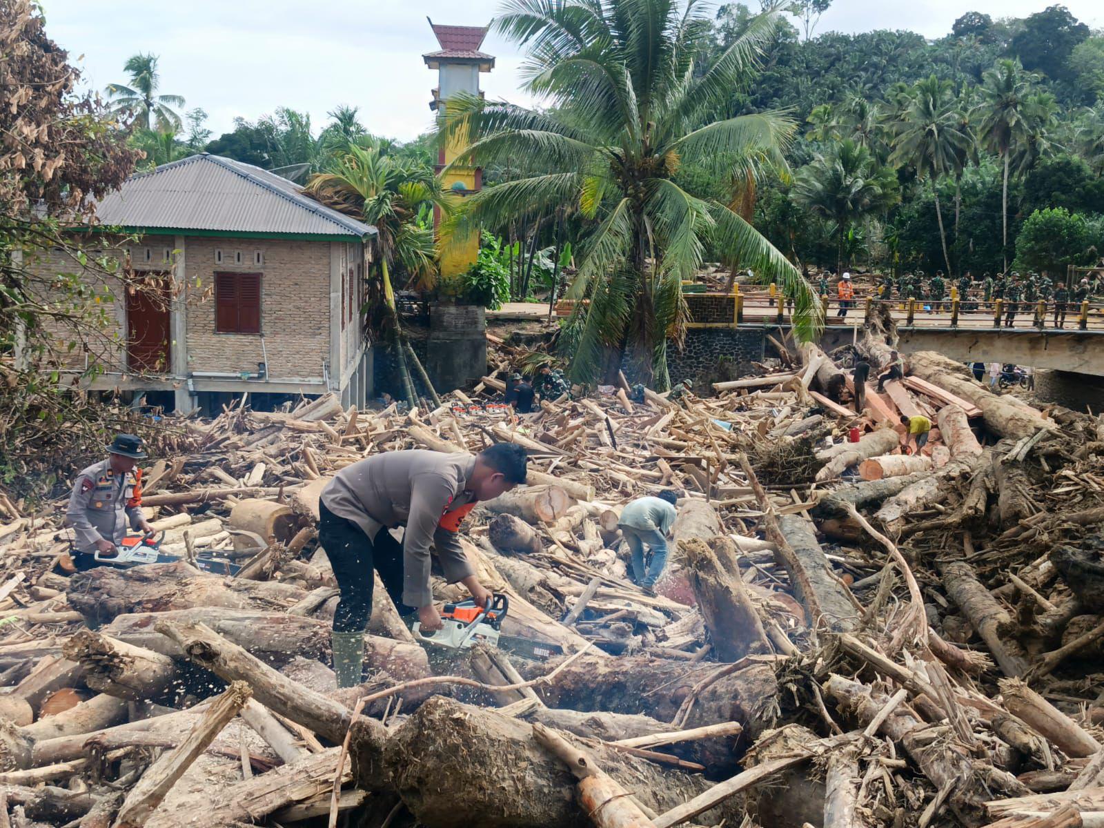 Personel Brimob melakukan pendampingan warga, penyaluran bantuan, dan koordinasi dengan posko lokal untuk mempercepat pemulihan pasca bencana.