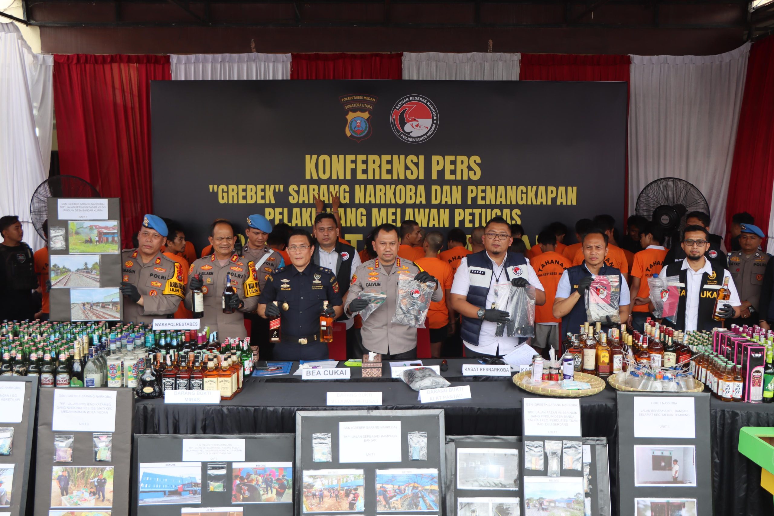 Konferensi pers dipimpin Kapolrestabes Medan Dr. Kombes Pol Jean Calvijn Simanjuntak dan dihadiri Wakapolrestabes Medan AKBP Rudy Silaen, pejabat utama Polrestabes Medan, perwakilan Bea dan Cukai Kota Medan, serta puluhan jurnalis dari media elektronik dan cetak.