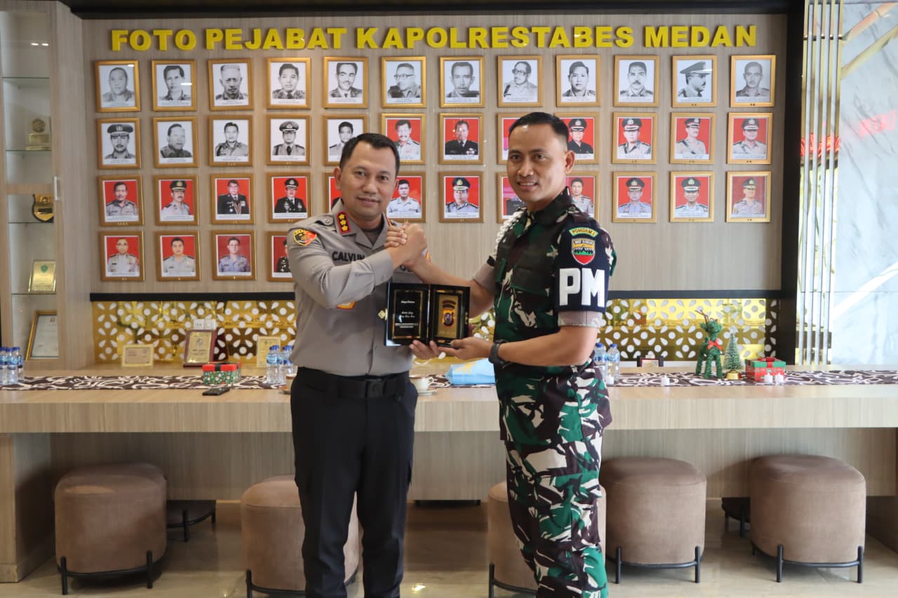 Kapolrestabes Medan Kombes Pol Dr. Jean Calvijn Simanjuntak, S.I.K., M.H. menerima kunjungan Dan Denpom I/5 Medan Letkol Cpm Atep Priatna, S.H., M.Tr. (Mil), Senin (12/01/2026) di Lobby Polrestabes Medan. Dalam kunjungan tersebut, Dan Denpom I/5 Medan turut didampingi Wadan Denpom I/5 serta Pasilpam Denpom I/5.