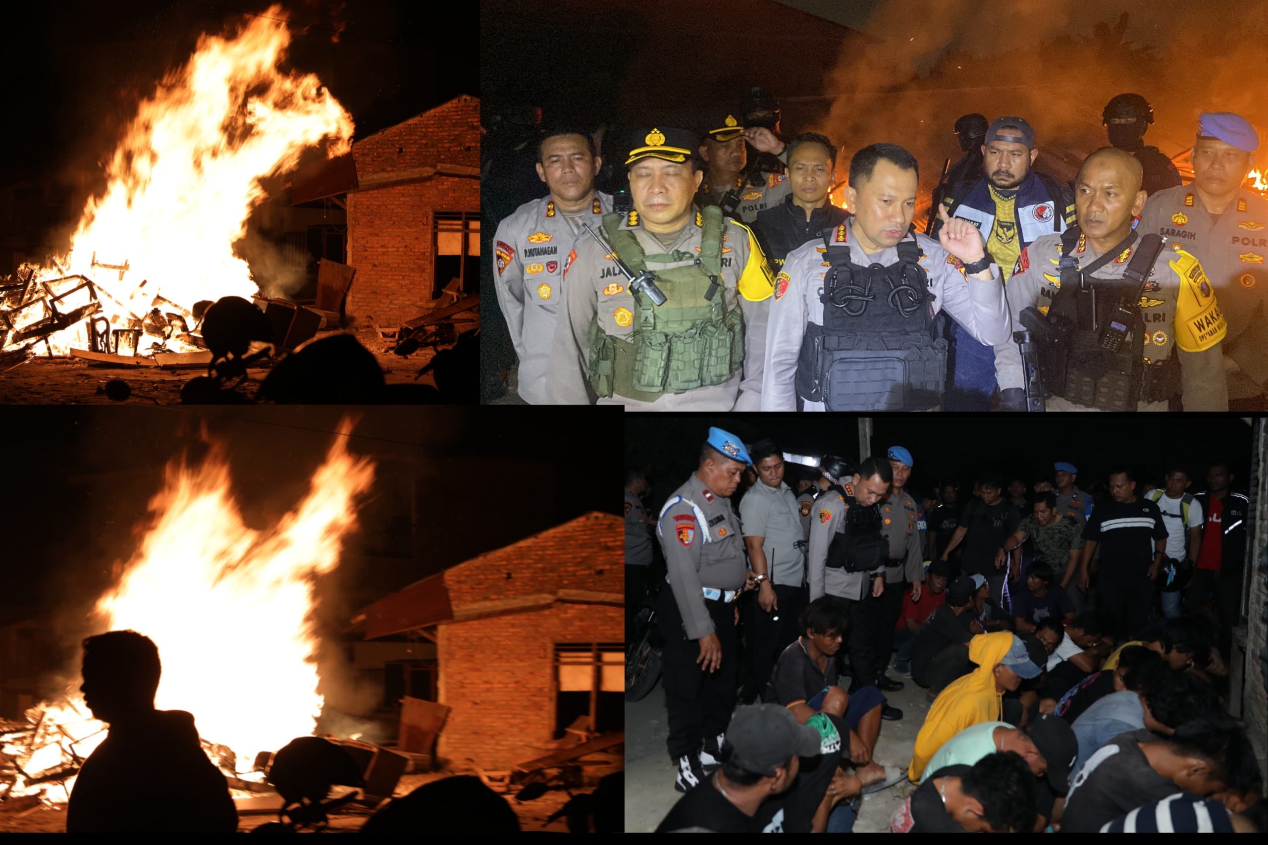 Selanjutnya, tim melakukan perobohan dan pembakaran barak-barak yang diduga digunakan sebagai tempat aktivitas peredaran dan penyalahgunaan narkoba. Seluruh rangkaian kegiatan berlangsung aman dan terkendali.