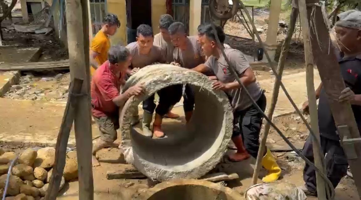 Brimob Batalyon C Terjun Bangun Rumah Swadaya dan Pagar Sekolah di Tolang Julu