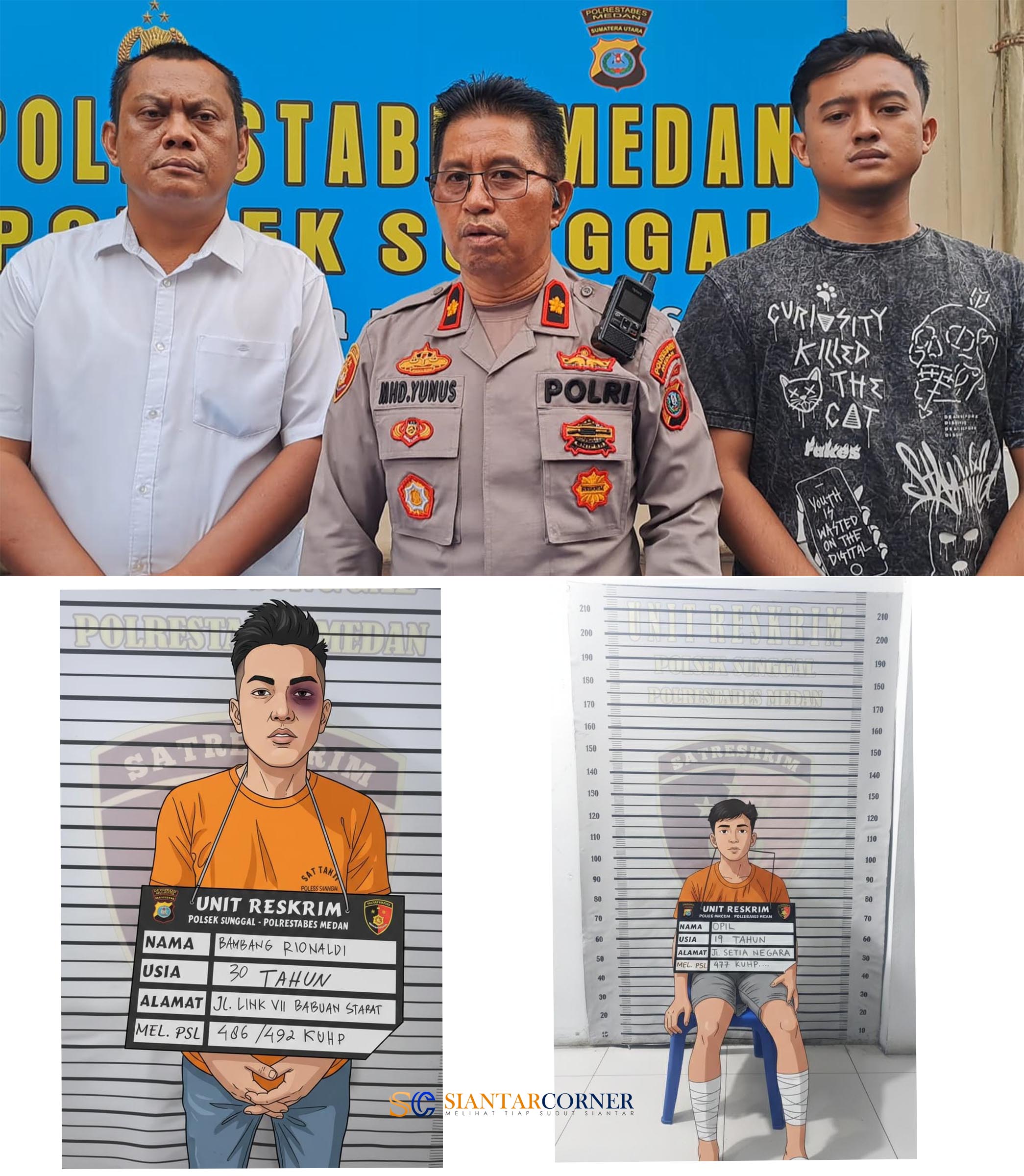 Polsek Sunggal meringkus dua pelaku pencurian kendaraan bermotor (curanmor) yang telah beraksi di 23 Tempat Kejadian Perkara (TKP) di wilayah Kota Medan. Kedua pelaku berinisial RA (24) dan OP (19), salah satunya merupakan tersangka utama kasus pencurian sepeda motor milik seorang guru berinisial MKP (24) di Tanjung Selamat, Sunggal, pada Maret 2025 lalu.